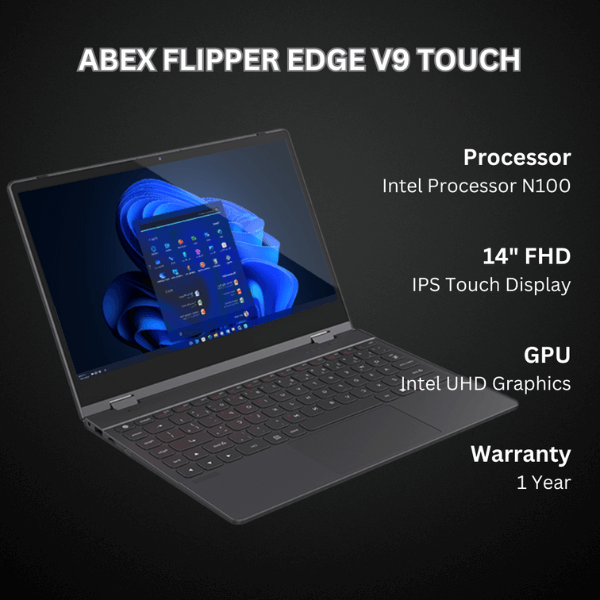 Flipper Edge V9 with its impressive FHD vibrant touch display – a versatile 2-in-1 convertible tablet/laptop designed for enhanced precision in writing and sketching. Ideal for users desiring the productivity of a laptop coupled with the convenience and flexibility of a tablet, it strikes a perfect balance between functionality and portability.